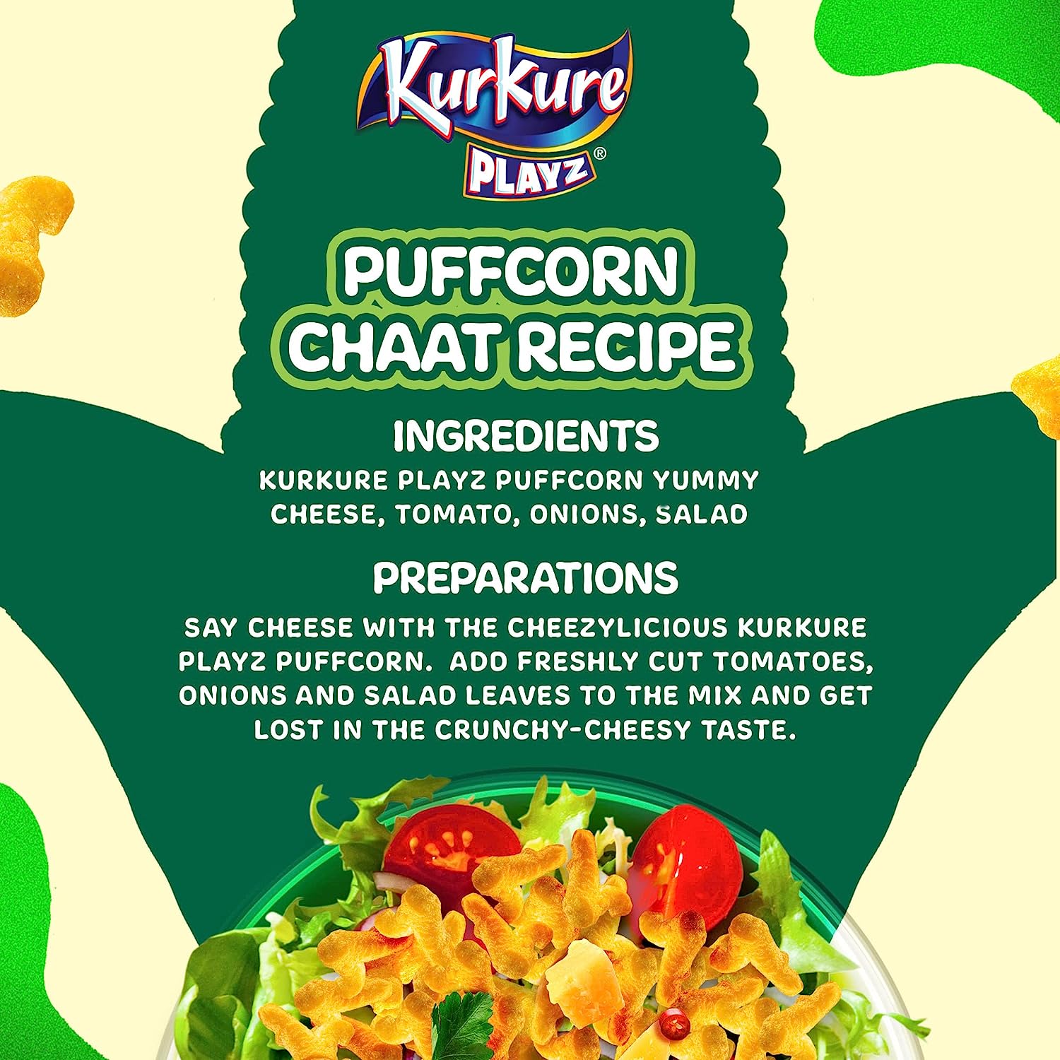 Kurkure puffcorn is a tasty, light & fluffy snack with an irresistibly yummy cheese flavour, sparking fun & playful moments between children & their mothers. About the brand: Kurkure is a crunchy, new-age pack namkeen snack brand which symbolizes light-hearted fun. Embodying the spirit of India, Kurkure has found a home in millions of hearts and minds and enjoys the position of a strong brand in India. Made with trusted kitchen ingredients: 100% veg all the raw materials used in Kurkure comply with the food safety & standards act & regulations 2006 and rules that govern the manufacture, distribution and sale of Kurkure.