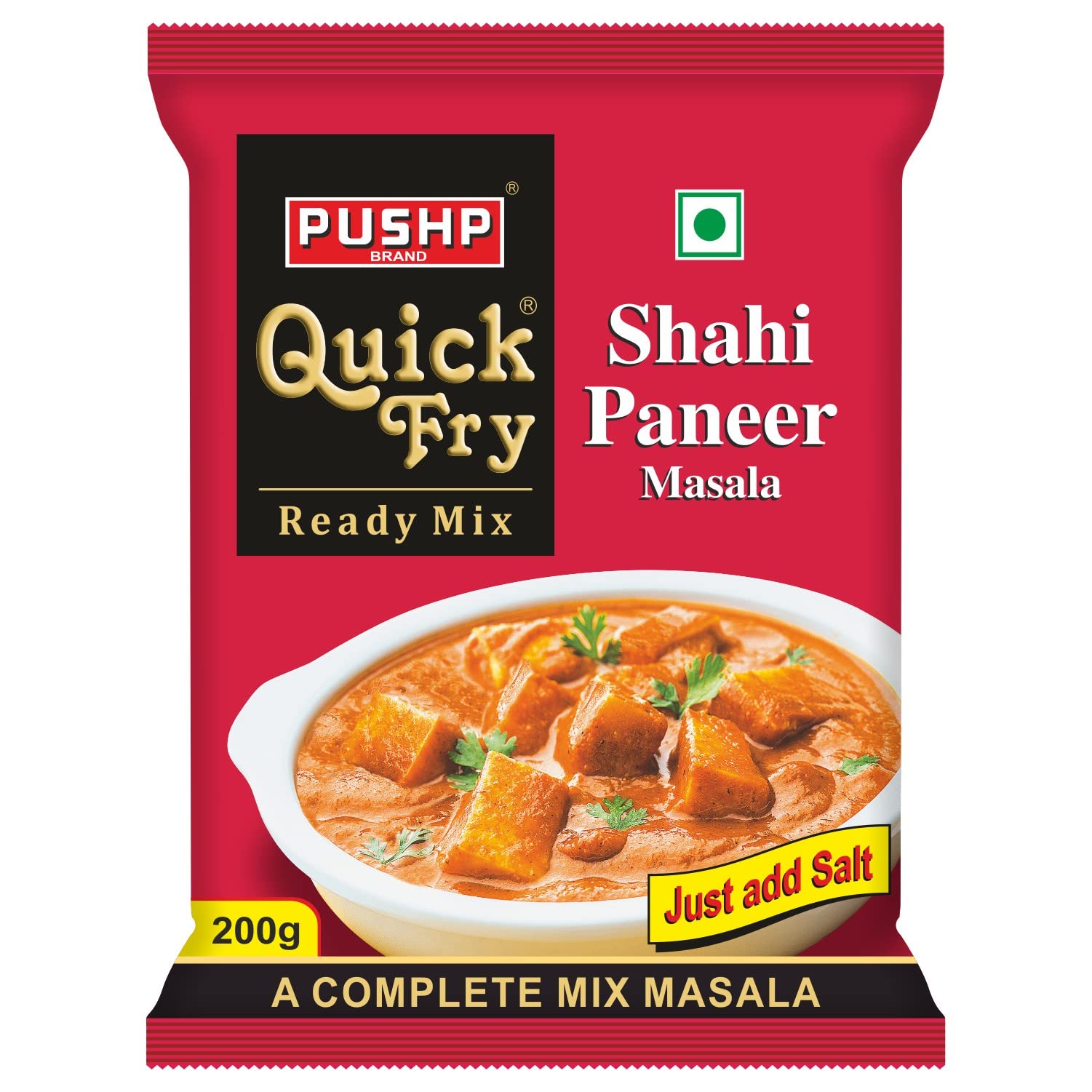 Quick Fry Dal Fry Masala is a complete ready to cook spice blend for a delicious dal. Just cut the packet and pour it in the pan and add salt as per taste and your delicious dal is ready as all the spices are premixed in it. It is a perfect balance of nutrients and flavor. It comes in 2 variants (With & without Onion & Garlic). Quick Fry Dal Tadka Masala is a complete ready to cook spice blend for a delicious dal. Just cut the packet and pour it in the pan and add salt as per taste and your delicious dal is ready as all the spices are premixed in it. It is a perfect balance of nutrients and flavor. PUSHP Quick Fry Sabji Masala brings out the authentic taste of Indian cuisine in your meal. It is a complete ready to cook spice blend for a delicious Vegetable dish. Just cut the packet and pour it in the pan and add salt as per taste and your delicious vegetable dish is ready as all the spices are premixed in it. It is a perfect balance of nutrients and flavor. For more information, follow the instructions on the packaging and get 100% authentic results every single time!