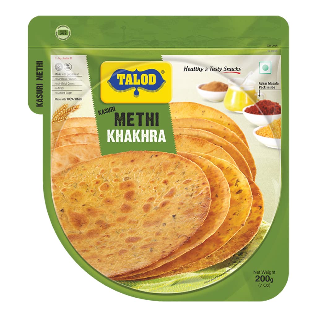 Talod Masala Khakhra is low calorie roasted snack (Non-fried) which is preferred by all age group and popular across the country because of its unique taste. It is a crispy, crunchy and 100% Non-fried snack. It has no transfat & cholesterol, which makes it healthy as compared to other snacks.