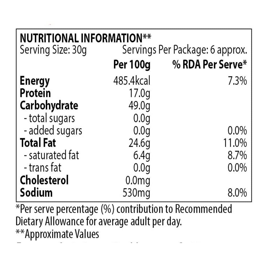 Made from split and baby chickpeas. The sizzling flavour of this snack is too good to be true! Small round crackers made from pulses flour and spices are the perfect snack for evening munch.