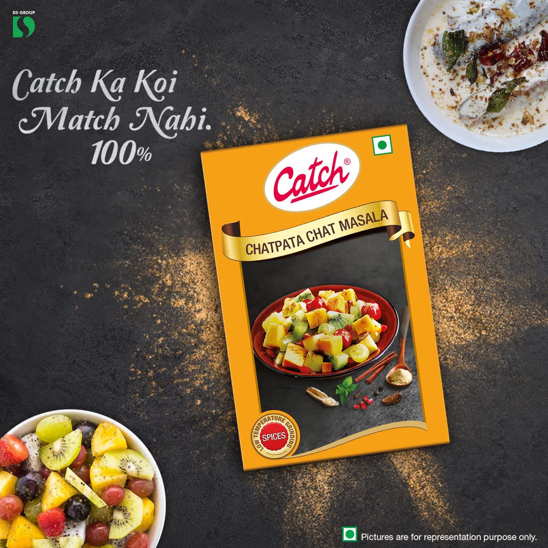 Finely ground and blended to create an aromatic blend that adds the right flavour, colour, and taste to Indian delicacies. Catch Chatpata Chat Masala Powder is an all-in-one seasoning. It adds a tangy flavour to any meal, leaving a savoury in your tastebuds. Catch’s Chatpata Chat Masala Powder is a blend of many spices that are sourced from the best farms from prime spice growing locations, ensuring the highest quality of the product. Catch Chat Masala Powder adds a perfect tanginess and elevates the richness of fruits and vegetables. It contains no added fillers that enhance its quality. It adds a zesty twist to your dishes also aids digestion. Catch Chatpata Chat Masala Powder is made with the help of low-temperature grinding technology that helps the natural flavours of the powder intact. Catch Ka Koi Match Nahi.