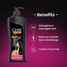 Chik thick & glossy black shampoo contains the goodness of black tea, badam protein & Bhringraj oil. It helps to enhance hair shine & strengthens your hair thereby, giving you thicker-looking & glossy hair. Get gorgeous-looking shiny hair with regular use of Chik Thick & Glossy Black Shampoo. It reduces hair fall due to hair breakage. Based on a consumer research study done in 2016.
