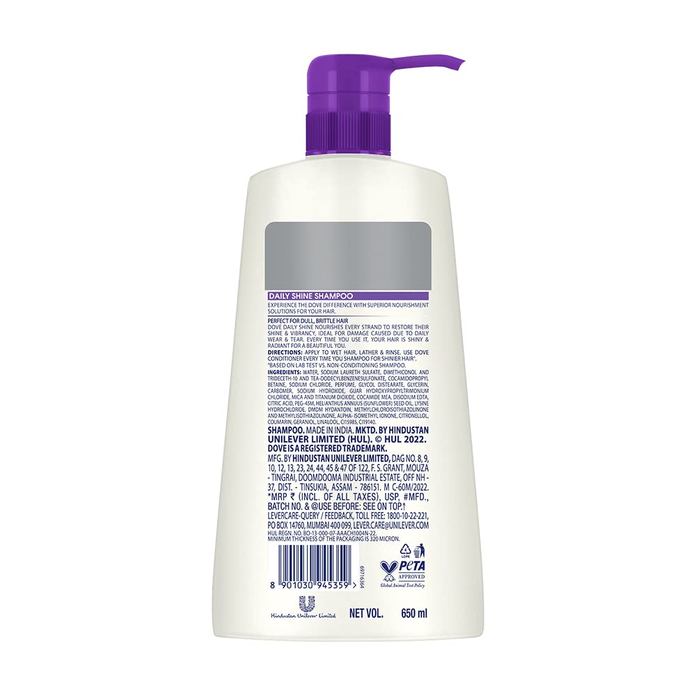 The mystery of how to get shiny hair isn't a tricky one to solve. The key to getting shiny damage free hair we all long for is making sure your hair is nourished, from the start of your routine. That's where Dove Daily Shine Shampoo comes in. Dove Daily Shine Shampoo with Nutritive Serum builds a protective shield around the hair fiber and defends your hair from daily hair damage. It is a gentle hair cleanser that keeps your hair looking healthy and lustrous. It is mild on your scalp but gives protection from the aggression your hair faces every day. Its Nutritive Serum absorbs into the hair strands to keep them beautifully nourished and shiny, this Dove shampoo surrounds your hair with a protective shield, defending it from everyday stresses, like brushing & damage. And not only is it gentle enough to use every day, over time Dove Daily Shine Shampoo makes your hair better*. So, as well as cleansing from roots up, it helps make your hair look healthy, too. The result? Beautifully shiny, strong and silky hair which is everything you want it to be. *Based on lab test with Dove Daily Shine System vs non-conditioning shampoo