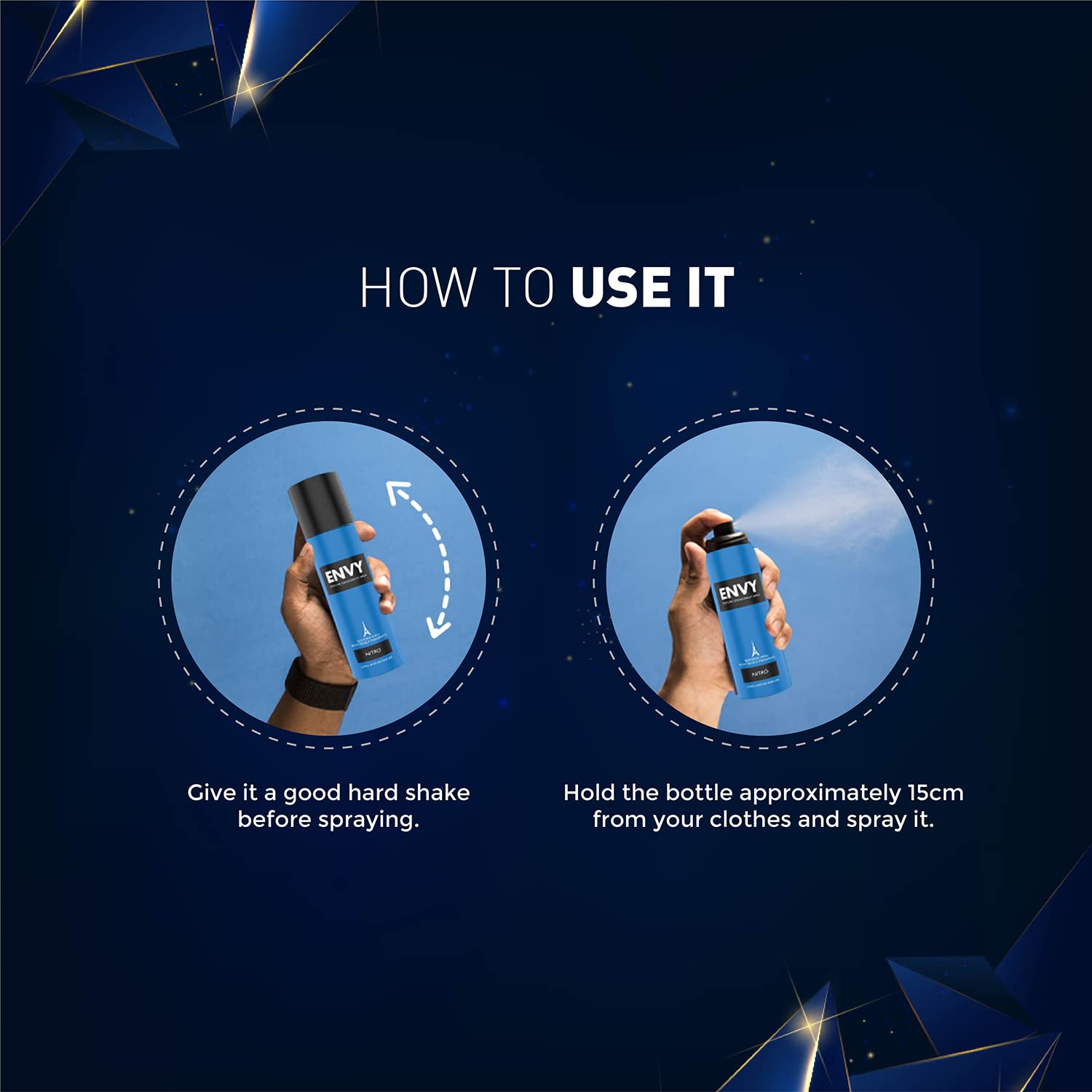 Tackle bad body odour with Envy Men Dark Perfumed Deodorant Spray 120 ml. This deodorant is your perfect companion for long-lasting freshness and protects you from sweat and odour throughout the day, whereas the enticing fragrance keeps you fresh at all times. So what are you waiting for? Buy the product online at the best rate, right here!
