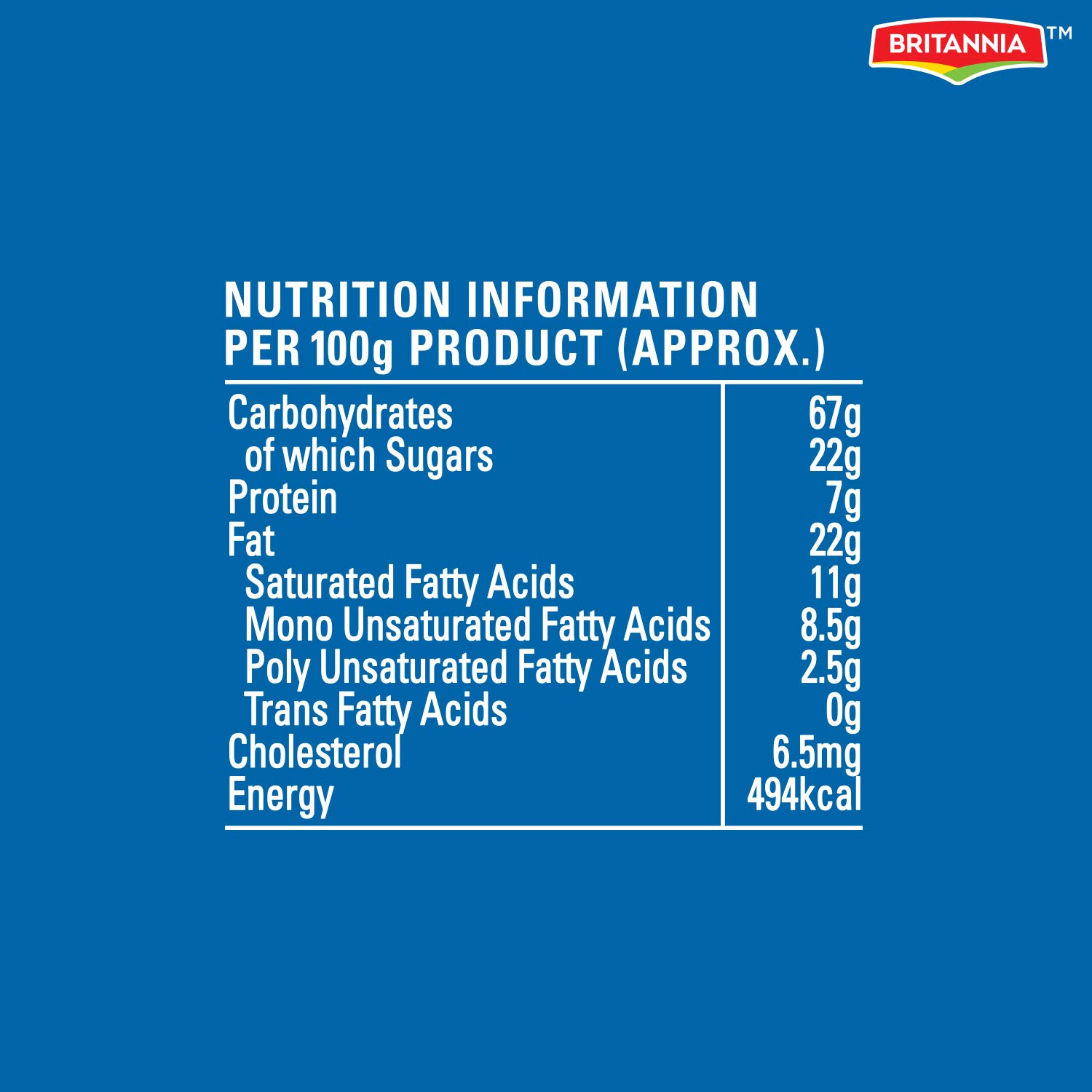 Britannia Good Day Butter Cookies are buttery flavoured cookies that satisfy your cravings between meals. Crunchy and crispy, the rich butter smoothly melts in your mouth giving a delicious taste. Britannia biscuits, cookies, cakes and rusk are a perfect companion for your tea. Believing in delivering fresh and healthy products, Britannia India manufactures some of India's favourite brands like 50-50, Tiger, NutriChoice, Bourbon, Milk Bikis and Marie Gold.