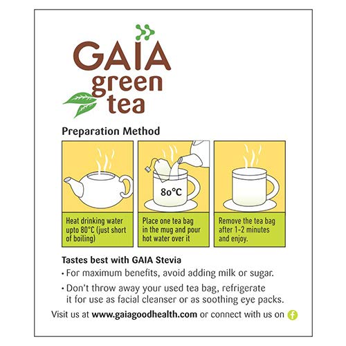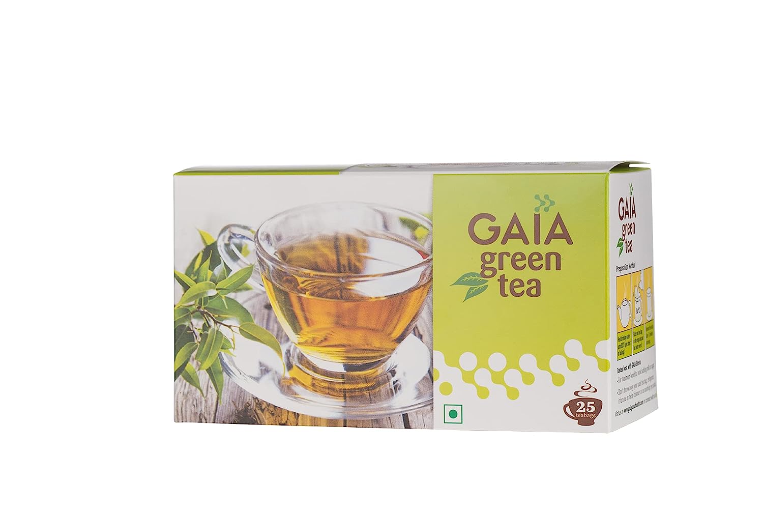 Gaia green tea (25 tea bags). Explore the wide range of products in food and gourmet category offered by gaia. Products are made of good quality ingredients. We do offer different type of products. Care instruction keep away from the items or products which may cause damage to this product.