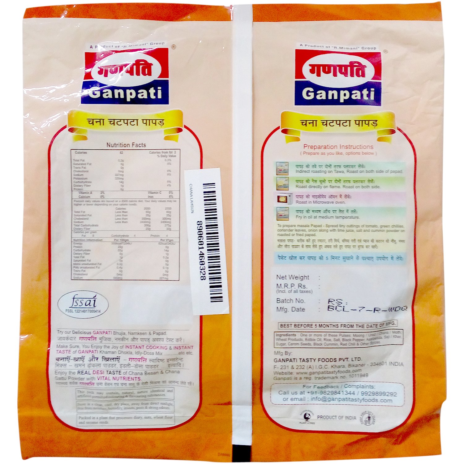 Experience the crunchy goodness of Ganesh Premium Chana Masala Papad. It goes well with a meal, beverages or you can have it as a standalone snack too. You can have it roasted or fried and even top it with chaat masala and onions and green chillies for a delectable twist. These papads are made from the finest ingredients and is packed hygienically to retain freshness for a long period of time. So go ahead, buy this product online today!